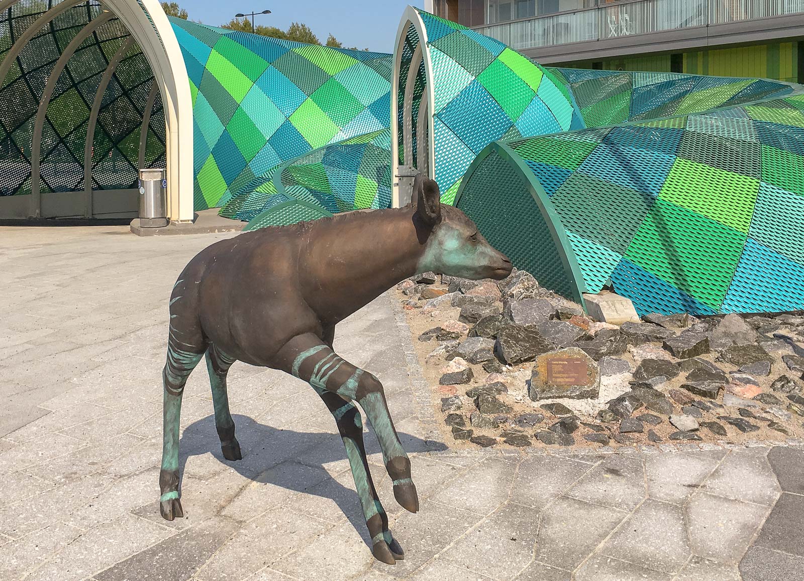 Lotta Mattilaan tutustuimme ensimmäisen kerran Niittykummun metroaseman valmistumisen yhteydessä. Jos olet kulkenut Niittykummun metroasemalle lännen suunnalta, olet ehkä huomannut okapin vasan. Omilla jaloilla niminen veistos, kuten metroasemalle johtavan käytävän seinämaalaukset, ovat Lotta Mattilan käsialaa.
