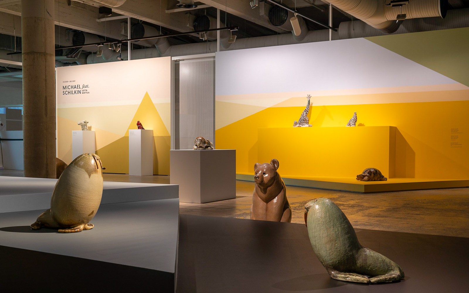 Samalla poikkesimme ovelan nimen omaavaan näyttelyyn Michael Schilkin feat. Lotta Mattila. Näyttelyssä on esillä keramiikkataiteilija Michael Schilkinin eläinhahmoja, mutta näyttelyn on suunnitellut Lotta Mattila, joka on myös höystänyt näyttelyä omilla veistoksillaan.