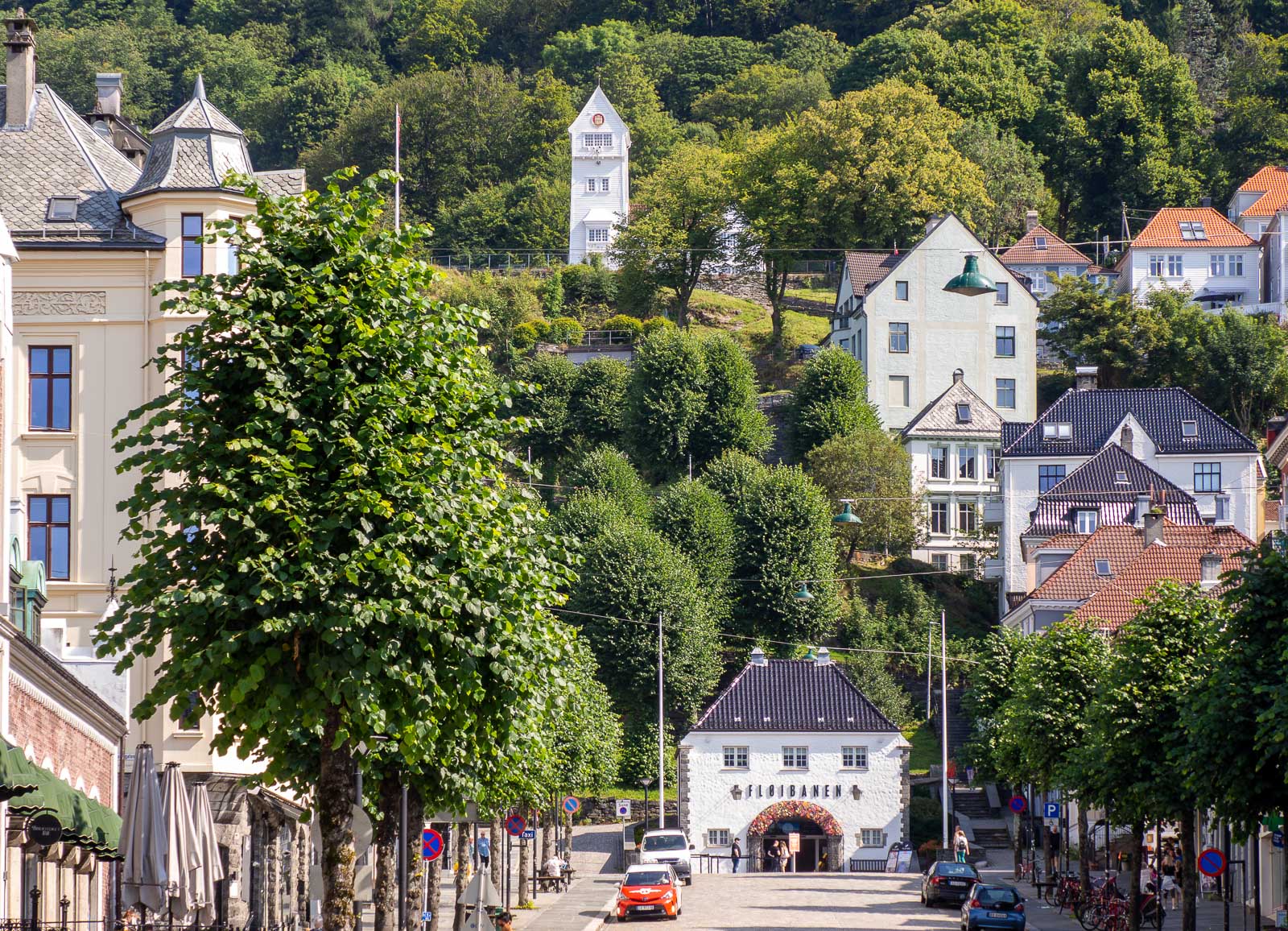 Kaupunkiin kuin kaupunkiin tutustuminen kannattaa aloittaa ylhäältä, jos siihen on mahdollisuus. Bergenin kaupungin näkee parhaiten Fløyen-vuorelta, jonne pääsee helposti Fløibanenilla läheltä kaupungin keskustaa. Kaapelivaunu kuljettaa nopeasti niin ylös kuin alaskin, joskin tietysti, jos reippailla haluaa, niin voi vuorelle toki nousta reippaillenkin (ja jatkaa reippailua Fløyen-vuoren monilla ulkoilureiteillä). Meidän tarpeisiimme askelia tapaa kertyä normaalina matkapäivänä riittävästi ilman ulkoilureittejäkin, joten valitsimme kaapelivaunun.
