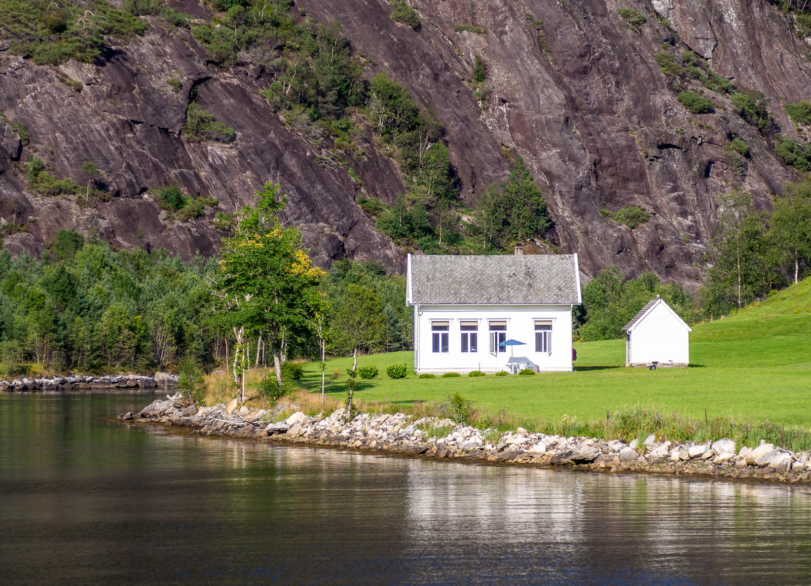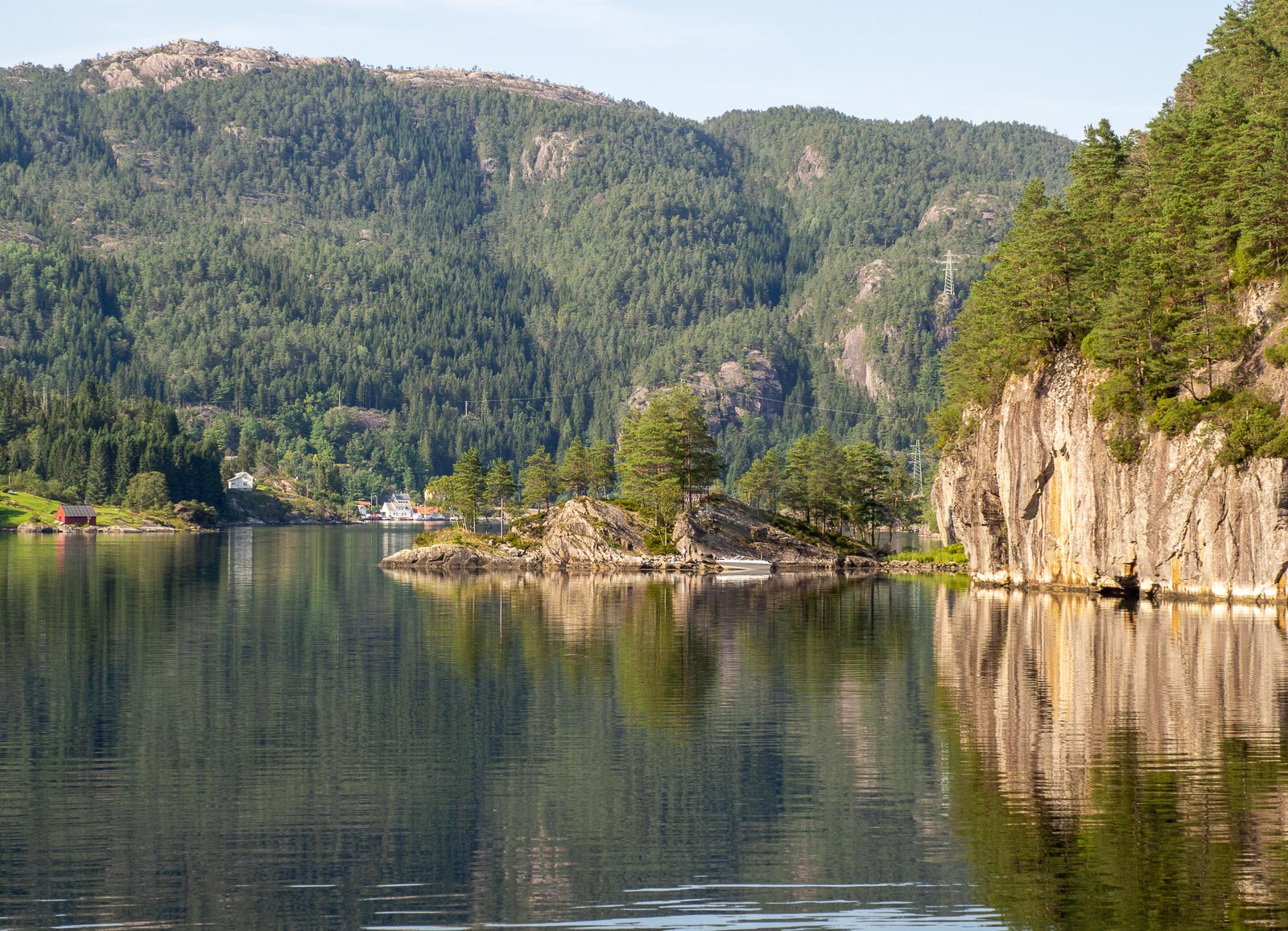 Mutta jo lyhytkin risteily Mostraum-vuonolle aina Modaleniin asti tarjoaa sekin merellisen näkymän Bergenin satamaan, kaupunkia ympäröiviin lähiöihin ja tietysti upeita vuonomaisemia. Risteilyn paluumatkalla näimme myös Salhusissa The Norwegian Knitting Industry Museumin rakennuksen, josta olinkin lukenut hiukan Bergenin käyntikohteita miettiessäni ja sen jälkeen teimmekin päätöksen palata sinne seuraavana päivänä, bussilla.