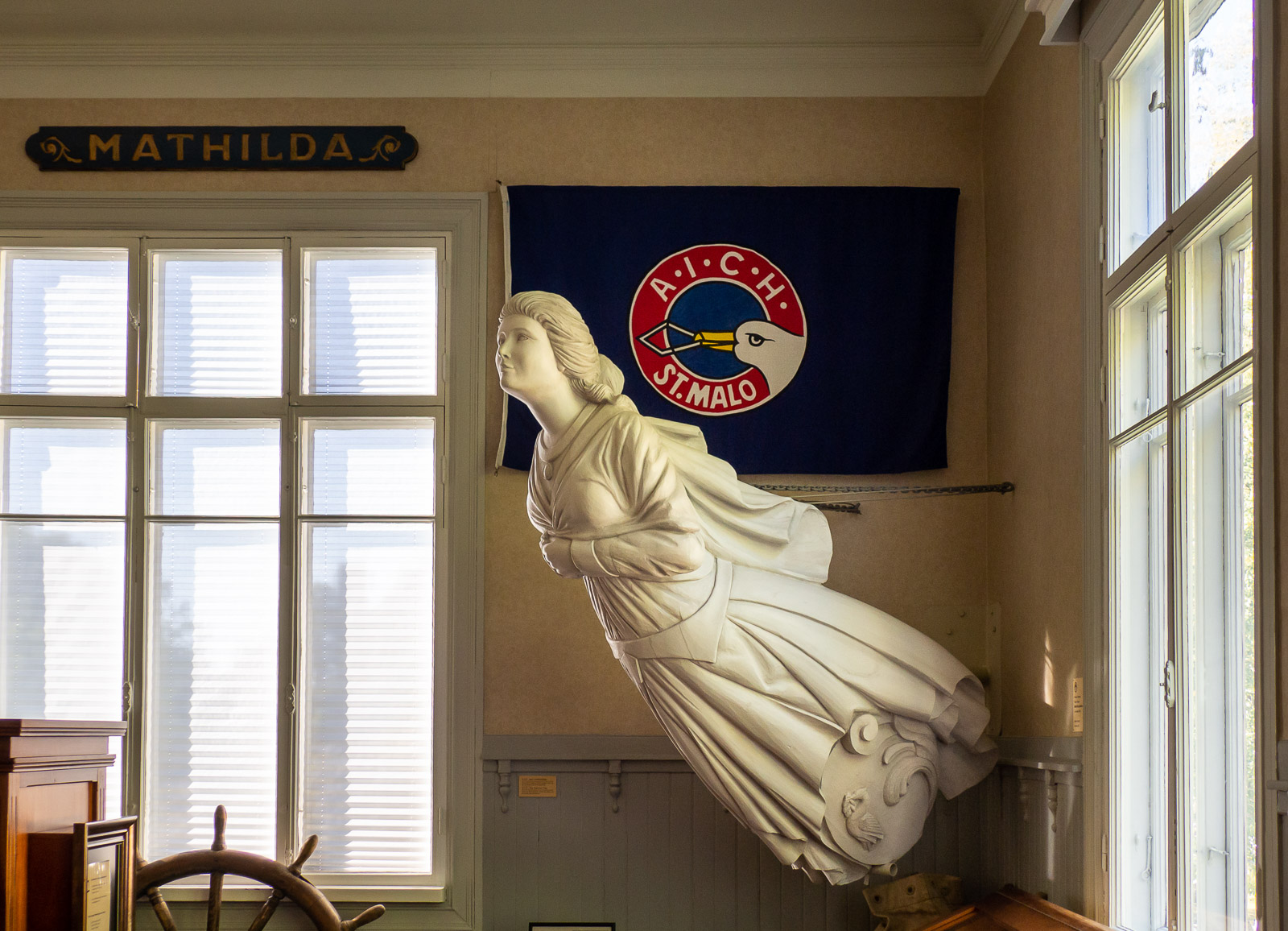 Museossa on myös samoja merimuseon elementtejä kuin vaikka Maarianhaminan tai Kotkan merimuseoissa, keulakuvia, Kap Hornin kiertäjiin liittyvää materiaalia, albatrosseja ja laivakoiria, siis posliinisia.
