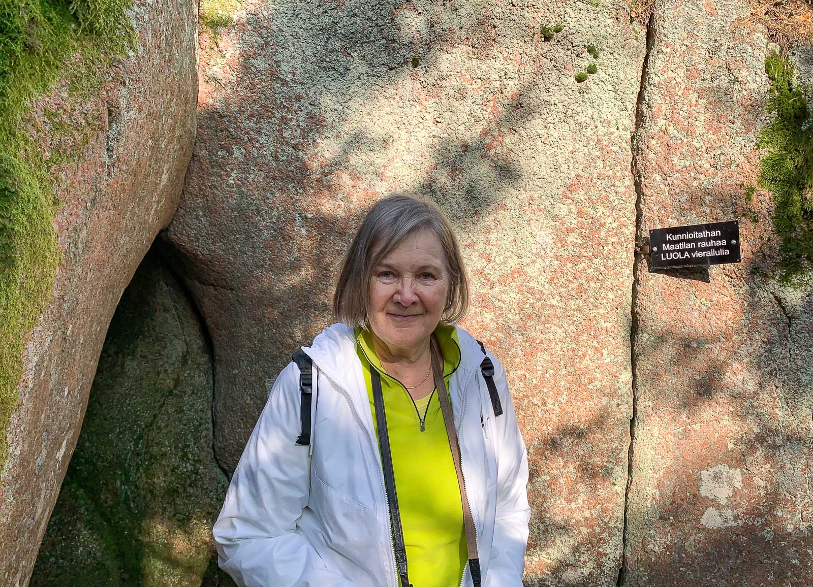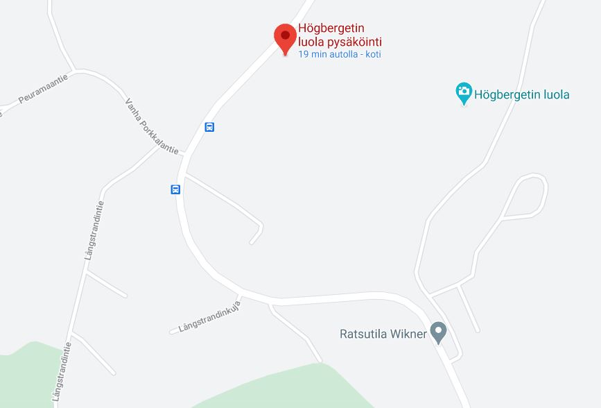 Selvitimme hiukan asiaa Kirkkonummea paremmin tuntevien ystäviemme kautta ja lukemalla pari nettijuttua lisää Högbergetin luolasta. Eräänä aurinkoisena maanantaiaamuna teimme sitten uuden yrityksen. Nyt tiesimme, että Porkkalantien varressa, n. 1,5 kilometriä Jorvaksentieltä, hiukan Peuramaan reitistöön kuuluvan kevyen liikenteen sillan jälkeen, tien vasemmalla puolella on P-merkillä merkitty maksullinen parkkipaikka, josta alkaa polku luolalle. Parkkipaikan maksullisuus tuntui hiukan oudolta ja se miten Mobilepayllä suoritettu maksu ja auto liitettäisiin toisiinsa jäi meille kuitenkin sen verran epäselväksi, että päätimme jättää auton parkkiin tien oikealla puolella olevalle levennykselle. Ja ei kun matkaan!