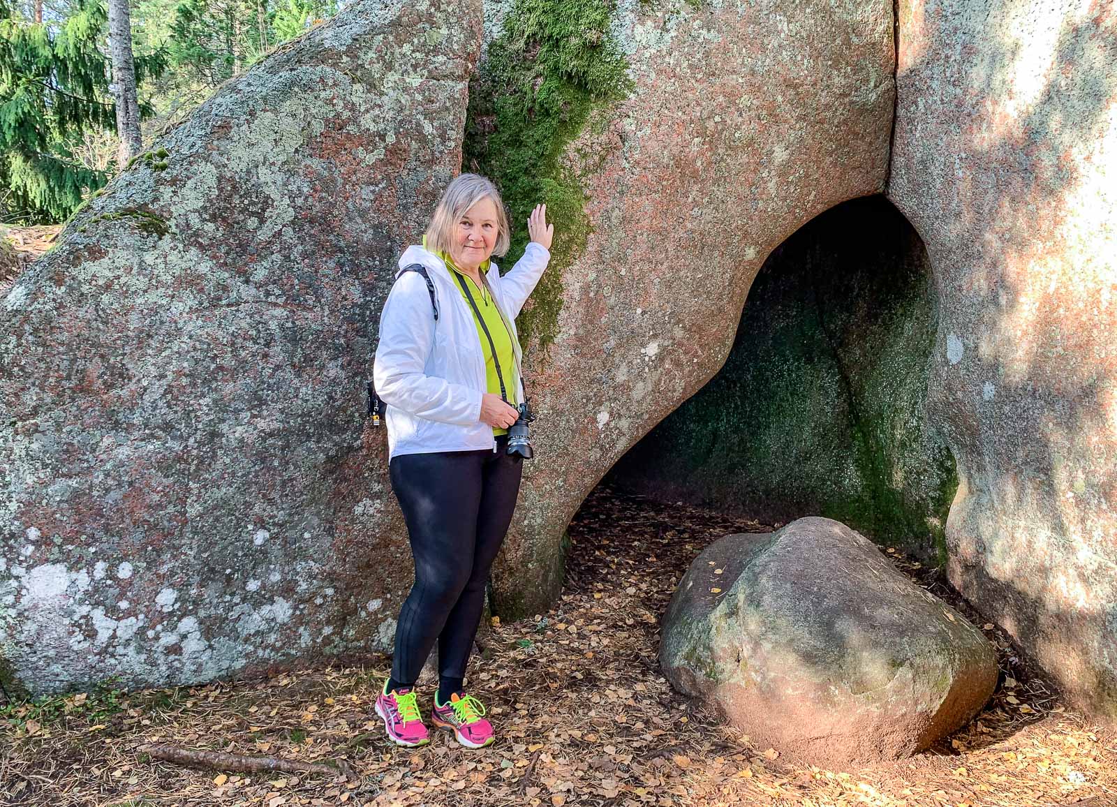 Pari yritystä ja sopivan haasteellinen lyhyt metsäretki kauniin aurinkoisessa syyssäässä ja palkintona ainutlaatuinen luontokohde – kyllä kannatti!