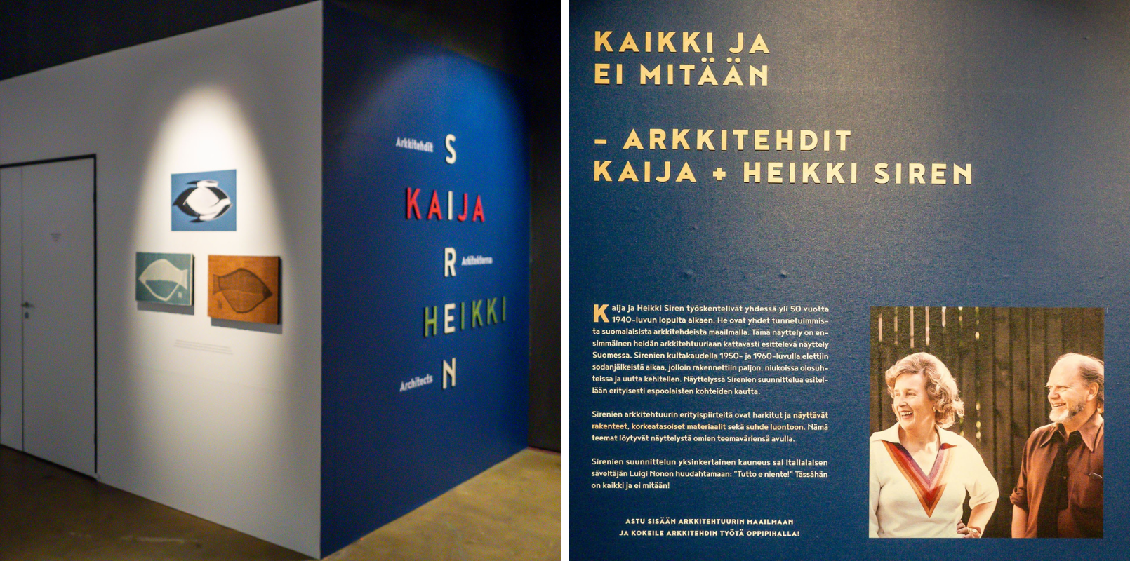 Espoon kaupunginmuseo KAMUssa avautui jokin aika sitten arkkitehtien Kaija ja Heikki Sirenin töitä esittelevä näyttely Kaikki tai ei mitään. Seurasimme näyttelyn avajaisia netistä ja kävimme sen jälkeen melko pian katsomassa sen ihan paikan päälläkin.