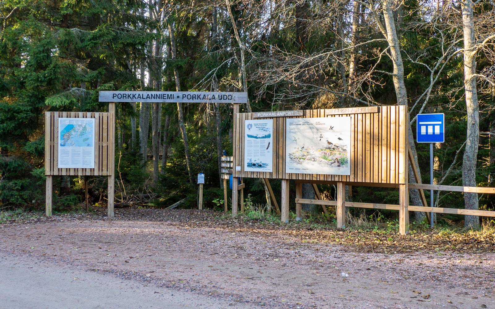 Mutta, pääsimme siis Porkkalan portilta, yhdeltä Porkkalan ulkoilualueen parkkipaikoista. Parkkipaikkoja on kolme: Vetokankaan, Hirviniityn ja Porkkalan portin pysäköintipaikat. Onneksi näin, sillä kaikki niistä ovat melko pieniä, joten ne marraskuista arkipäivää ruuhkaisempina päivinä täyttynevät nopeasti.
