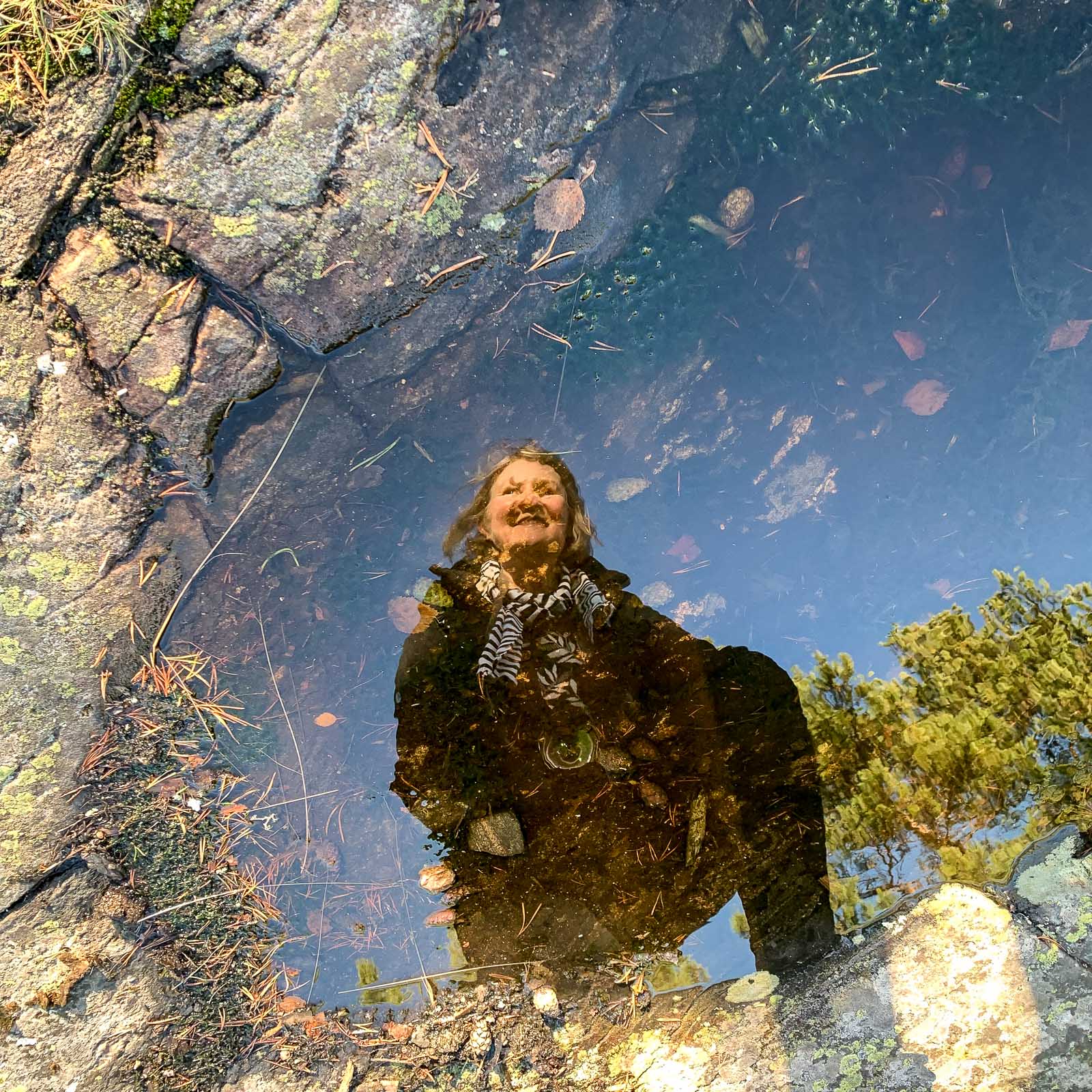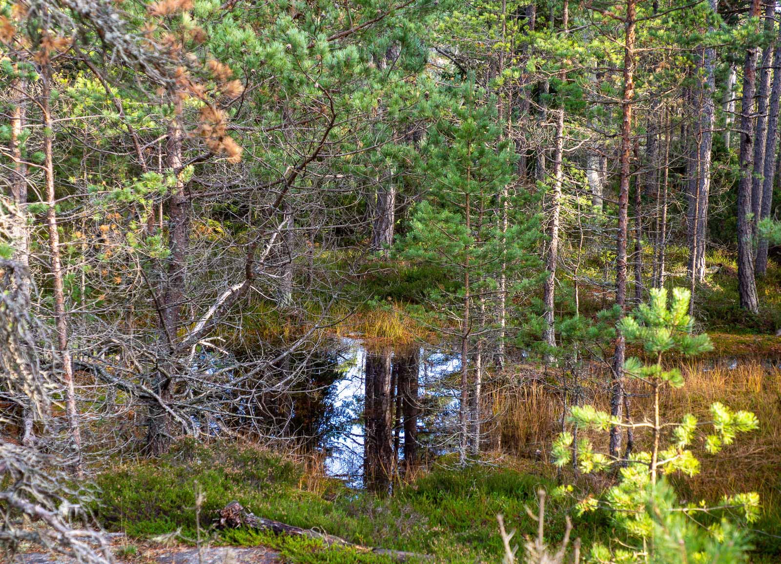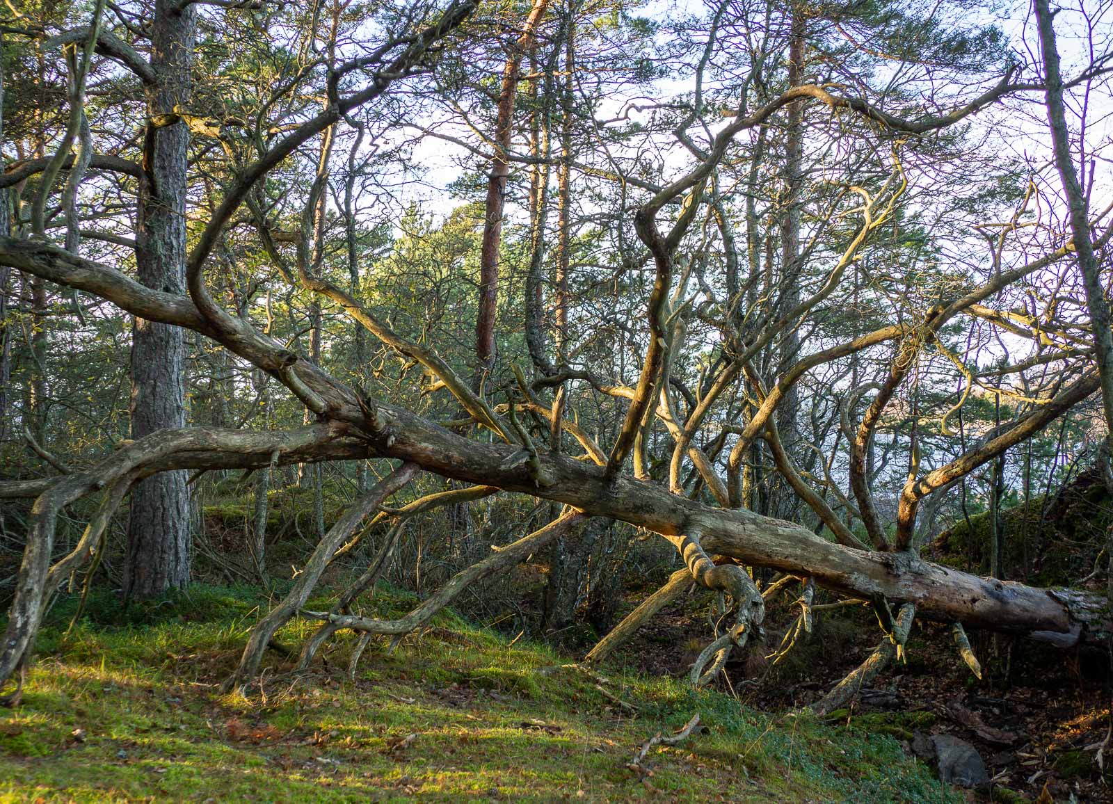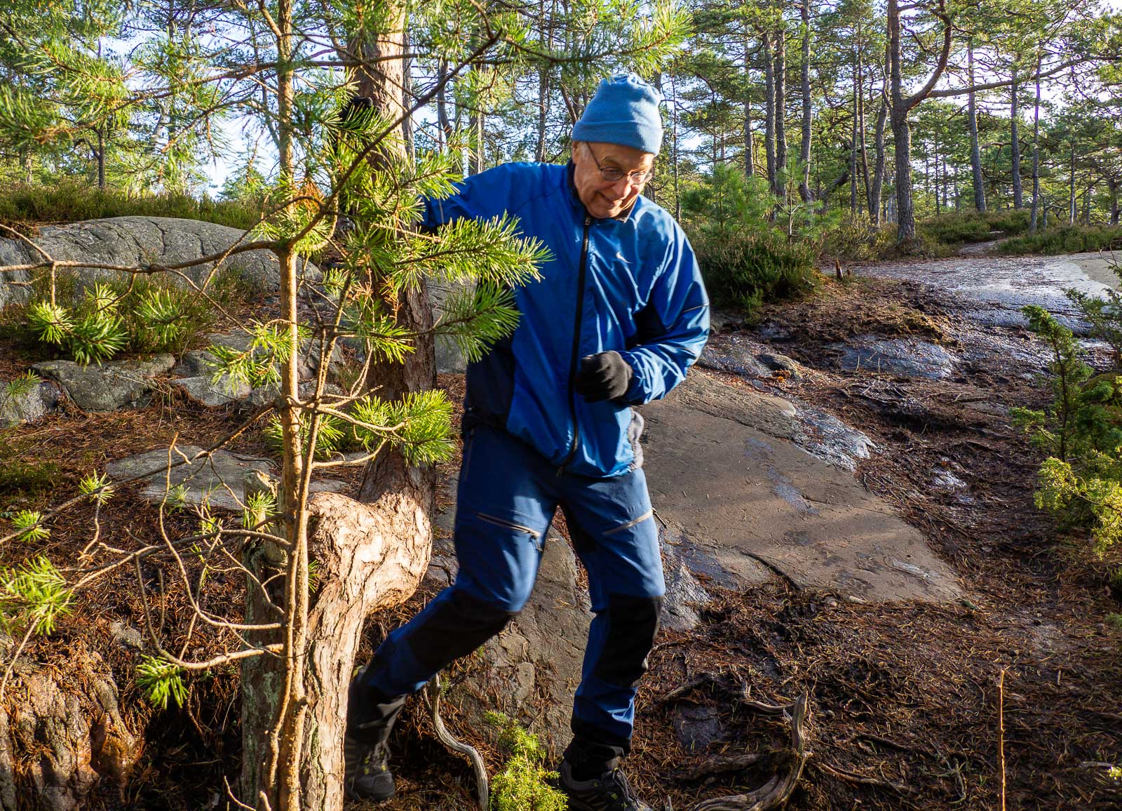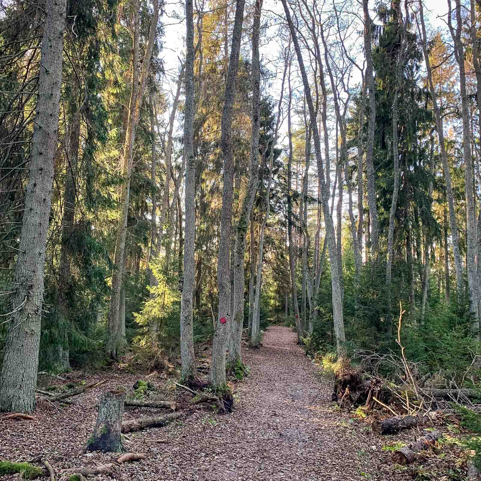 Jos Pampskatanin niemen upeus oli ympäröivässä meressä, niin Telebergetin lenkillä päädyimme ihailemaan monimuotoista metsää monin kohdin. Täällä on kalliota pitkin kasvavia mäntyjä, jäkälää ja naavaa puiden oksilla ja seuraavaksi tiheää kuusimetsää. Joskus olen antanut itselleni kertoa, että jäkälä ja naava tarkoittavat, että ilma on puhdasta, joten sitä se täällä siis on.