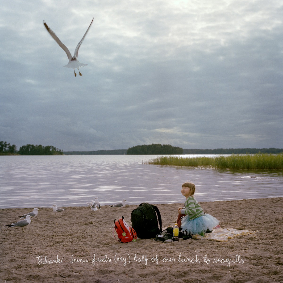 Leinu feeds (my) half of our lunch to seaguls.