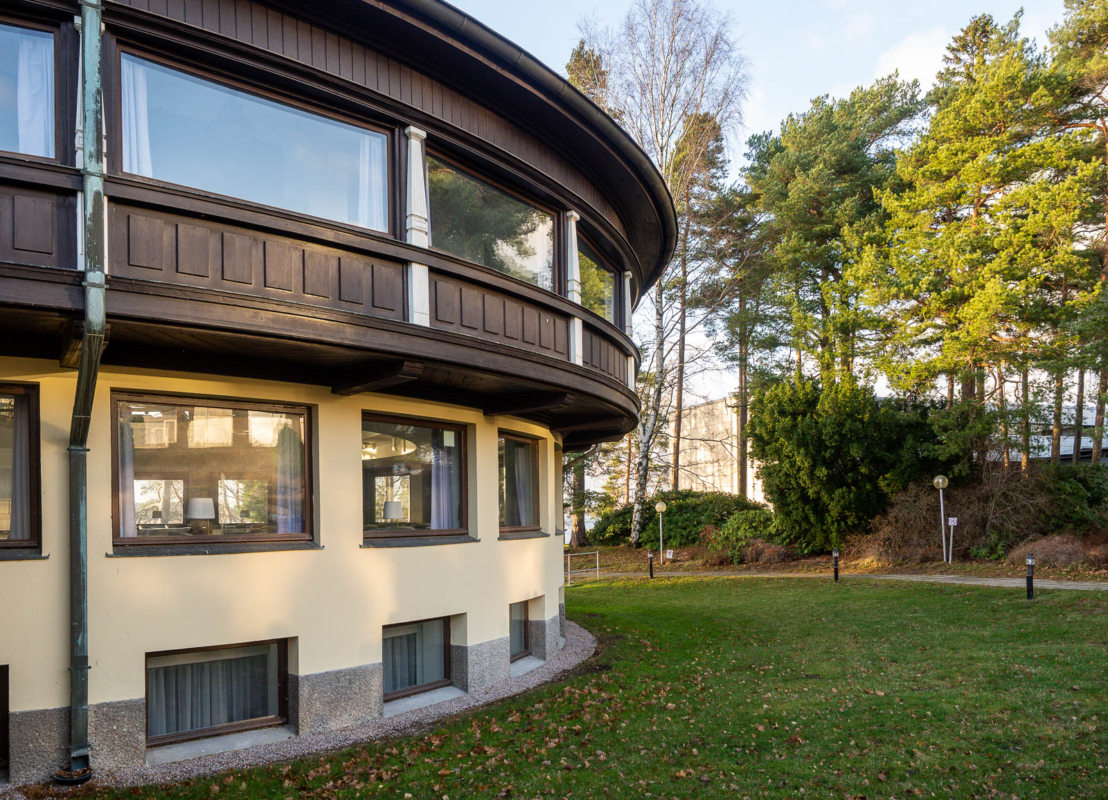 Pysähdyimme hetkeksi myös Kalastajatorpalle. Nousukaudella 80-luvulla ja sen jälkeenkin etenkin pyöreä sali tuli minullekin tutuksi monen kokouksen ja konferenssin myötä, mutta on Kalastajatorppa ja pyöreä sali nähnyt paljon muutakin. Sodan aikana tiloissa toimi ensin sairaala ja myöhemmin ilmavalvonta. 1952 Armi Kuusela kruunattiin Suomen Neidoksi Kalastajatorpan iltajuhlassa, vaikka itse valinta olikin tehty jo aikaisemmin.