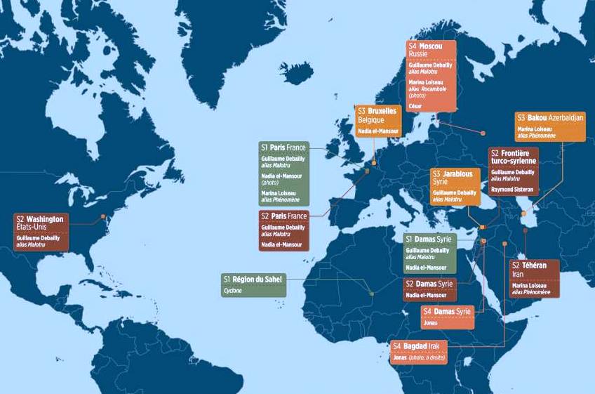 Toukokuu: Innostuimme, mekin, Sanna Kangasniemenkin ylistämästä Le Bureau -sarjasta. Olen samaa mieltä, että Le Bureau on heittämällä vuoden, ellei vuosikymmenkin sarjatapaus. Suomessa toukokuussa katsottavissa olleiden kausien jälkeen siirryimme katsomaan viidettä kautta Ruotsin Areenasta, eli SVT:n verkkopalvelusta, kiitos VPN:n ja kiitos tyydyttävän ruotsinkielen taidon. Matkailuakin sarja tarjosi kiitettävästi – katso alla olevaa karttaa.