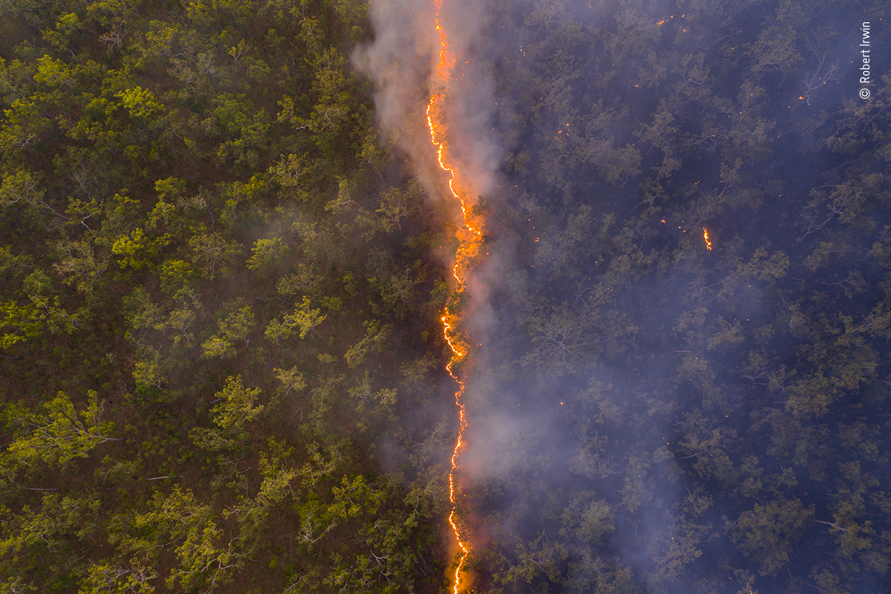 Robert Irwin voitti äskettäin tällä kuvalla Bushfire Lontoon Luonnonhistoriallisen museon järjestämän kilpailun Wildlife Photographer of the Year -äänestyksen. Dronella kuvattu kuva on otettu Australian Queenslandissä Steve Irwinin luonnonsuojelualueella. Kuvassa liekkimeri erottaa vihreän koskemattoman luonnon tumman savuisesta tulen vaurioittamasta luonnosta. Katselin tätä kuvaa ja muutamaa muutakin kyseisessä kilpailussa palkintosijalle yltänyttä luontokuvaa ja jäin pohtimaan, että siivittikö juuri tämä, välillä aika lohduttomalta tuntuva, aika nämä kuvat voittoon?