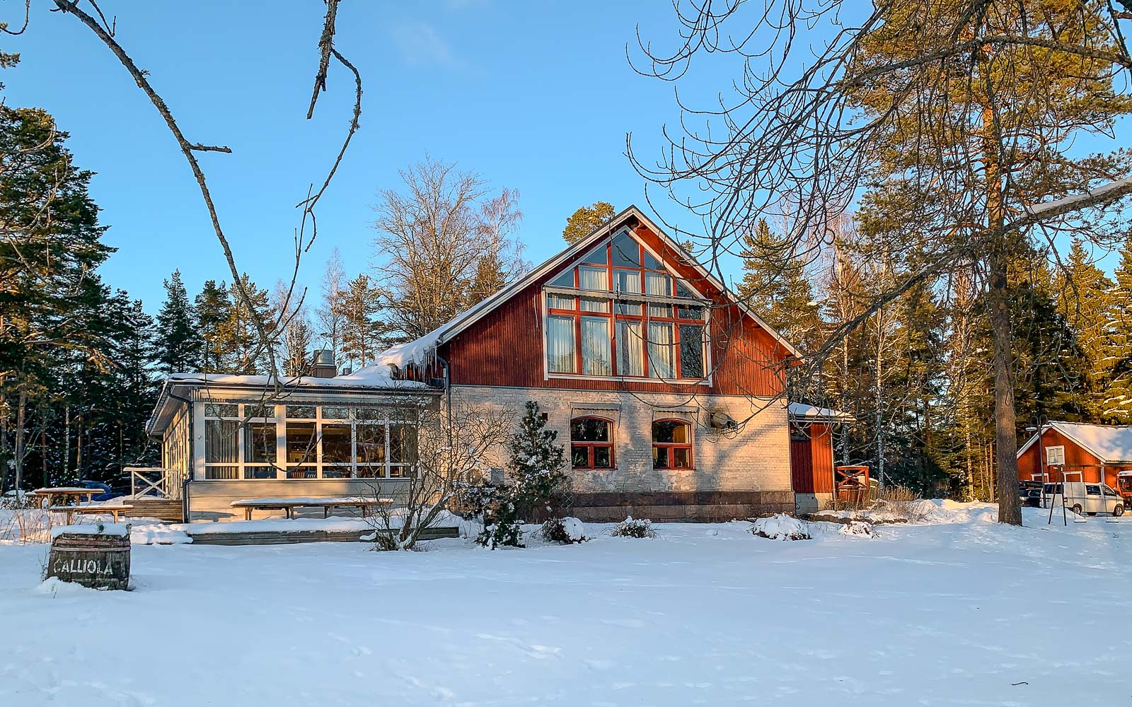 Vietimme helmikuun puolivälissä pari talvista päivää Calliolassa, Snappertunassa. Meille, senioreille, saaristo tuntui tänä talvena Lappia paremmalta vaihtoehdolta, sillä täällä eivät ole “kaikki” – ja vaikka olisivatkin, niin saaristossa ei ole isoja turistikeskittymiä, joten turvaetäisyyksien säilyttäminen on helppoa. Eikä sen puoleen, ei näillä pienillä paikkakunnilla, haja-asutusalueella, oikein ole ollut tartuntojakaan. Aikaan ennen koronaa Calliola keskittyi kokouksiin ja juhliin, mutta nyt tämä saaristoparatiisi on avoinna perheille ja pariskunnille.