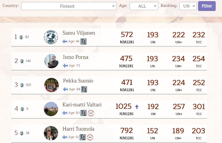 Nomadmania-sivuston hyvänä puolena on, että jos sen onnistuu täyttämään tällä alimmalla, 1301 alueen tasolla, niin sivusto laskee samalla vaivalla myös YK:n osavaltiot, UN+ -listan pisteet ja TCC:n alueet. YK:n osavaltiot laskee toki myös MTP-sivusto.